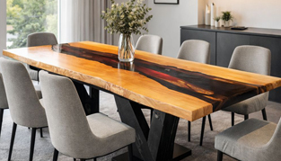 Hier entstehen Tische und Holzmöbel in Handarbeit – gefertigt aus massivem Holz, kombiniert mit Epoxid und feinen Metallintarsien. Jedes Stück ist ein Unikat: modern im Ausdruck, ehrlich im Material, präzise im Detail. Keine Serienware, kein Kompromiss – sondern Möbel mit Charakter.